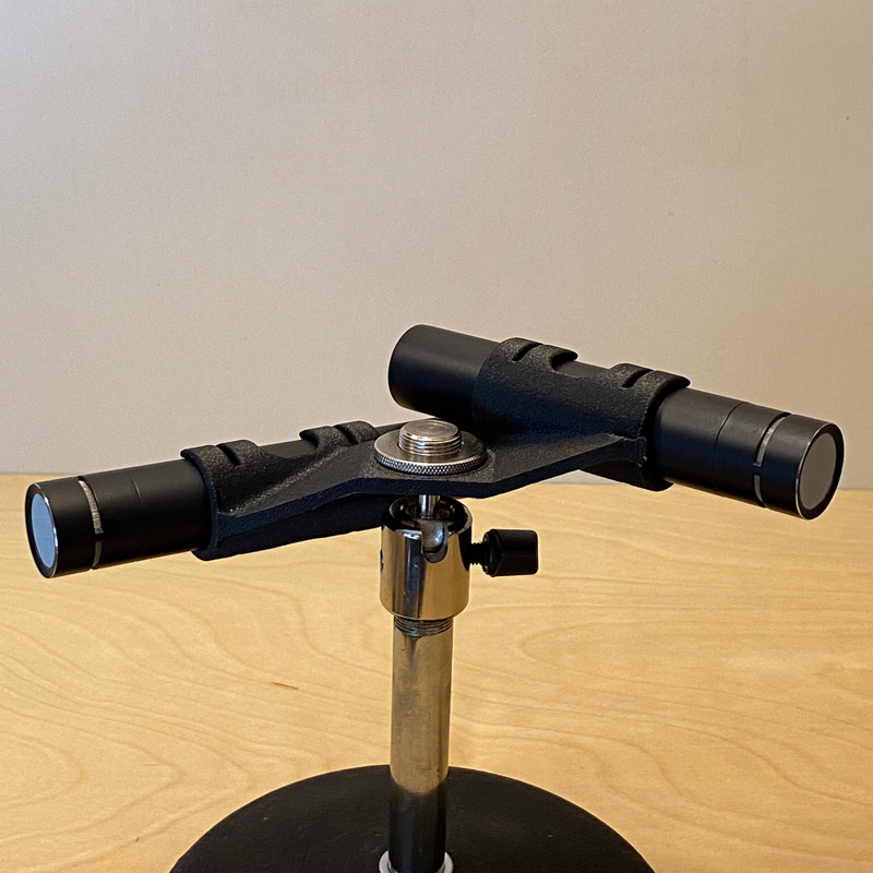 ORTF is a "Near Coincident" stereo microphone technique that provides a good balance between stereo localization and spaciousness. Place microphones in the clip with the diaphragms about 17cm apart (about 6 3/4”). Multiple sizes are available. We can fit nearly any microphone.